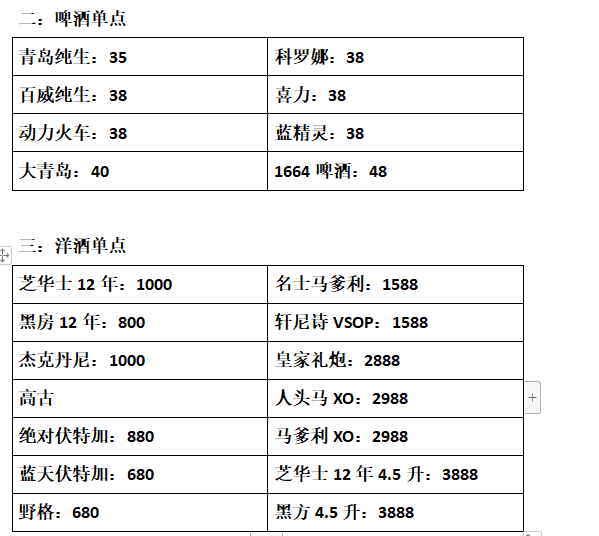 酒水: