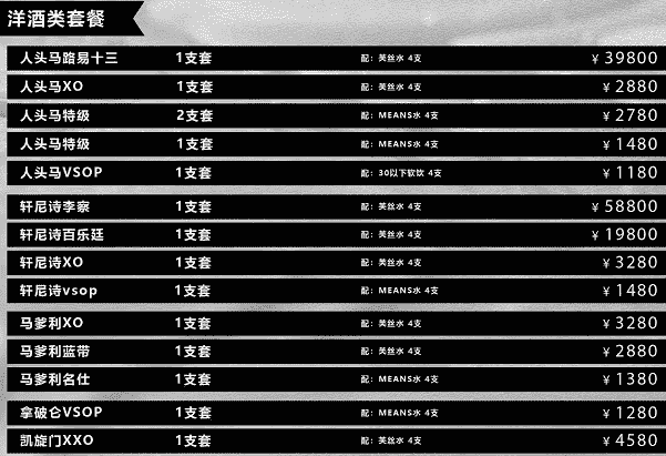 义乌名仕酒吧价目表 MEANS CLUB低消