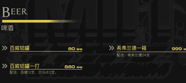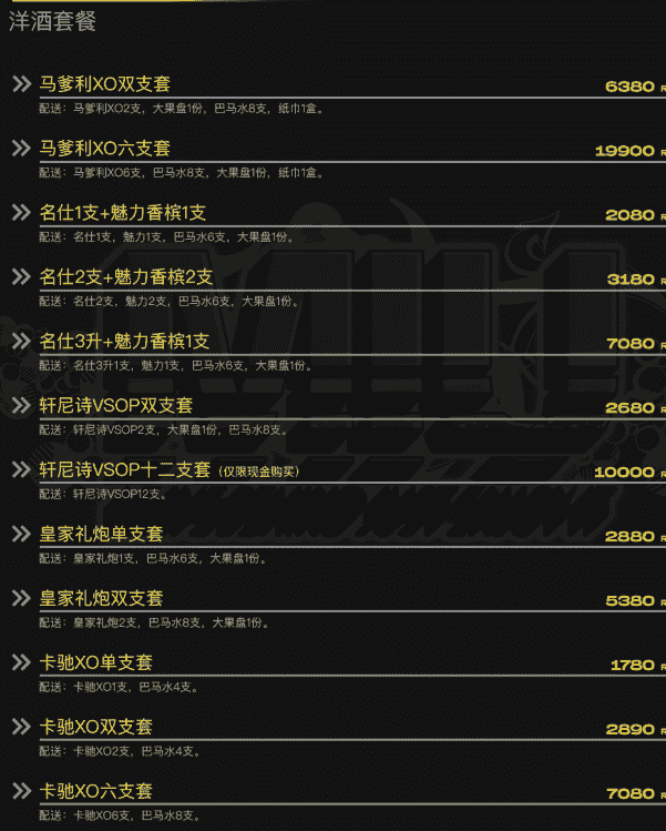 MIU酒吧消费价格表